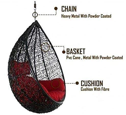 - HANDWOVEN and HANDCRAFTED WICKER: Add a playful look to your patio with this outdoor indoor ceiling hanging swing chair for adults. Deck up your balcony with this all-weather synthetic wicker with a powder-coated iron frame. The heavy-duty antique bronze finish swing can hold upto 110-130 kg in weight. Your garden or living room will look stunning with this swing chair. Enjoy the outdoors with this easy to manage patio decor in any weather. The single seater Jhula swing comes with 4 Feet Chain